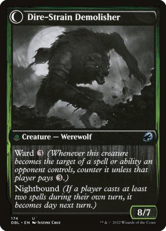 Ward {3} (Whenever this creature becomes the target of a spell or ability an opponent controls, counter it unless that player pays {3}.) Nightbound (If a player casts at least two spells during their own turn, it becomes day next turn.)