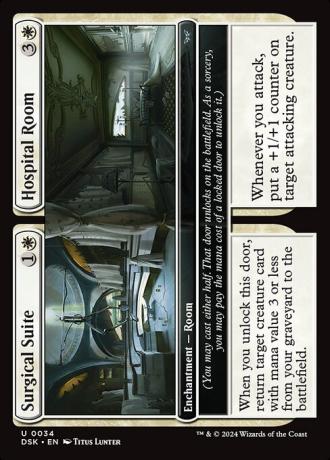 Whenever you attack, put a +1/+1 counter on target attacking creature. (You may cast either half. That door unlocks on the battlefield. As a sorcery, you may pay the mana cost of a locked door to unlock it.)
