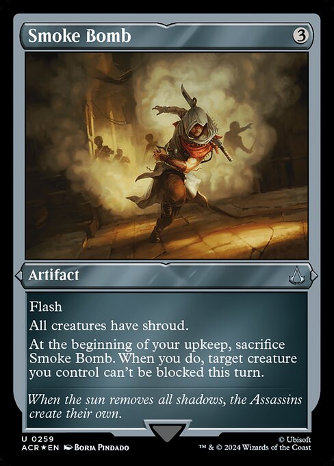 At the beginning of your upkeep, sacrifice this artifact. When you do, target creature you control can't be blocked this turn.