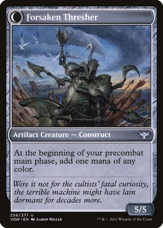 At the beginning of your end step, if there are three or more omen counters on this creature, untap it, then transform it.