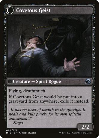 If Covetous Geist would be put into a graveyard from anywhere, exile it instead.