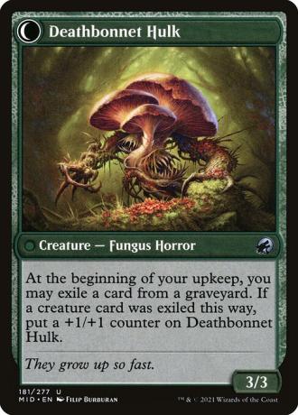 At the beginning of your upkeep, mill a card. Then if there are three or more creature cards in your graveyard, transform this creature. (To mill a card, put the top card of your library into your graveyard.)