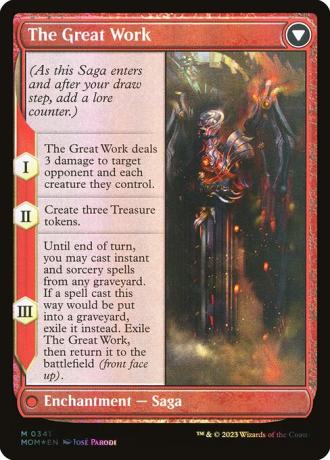 III — Until end of turn, you may cast instant and sorcery spells from any graveyard. If a spell cast this way would be put into a graveyard, exile it instead. Exile this Saga, then return it to the battlefield (front face up).