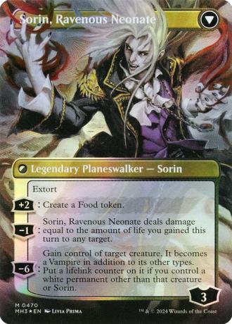 [−6]: Gain control of target creature. It becomes a Vampire in addition to its other types. Put a lifelink counter on it if you control a white permanent other than that creature or Sorin.