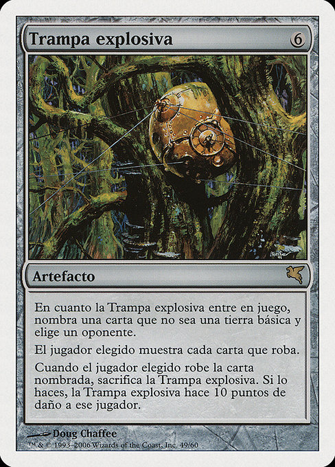 When the chosen player draws a card with the chosen name, sacrifice this artifact. If you do, this artifact deals 10 damage to that player.