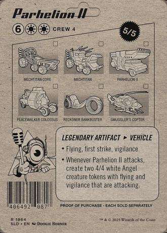 Whenever Parhelion II attacks, create two 4/4 white Angel creature tokens with flying and vigilance that are attacking.