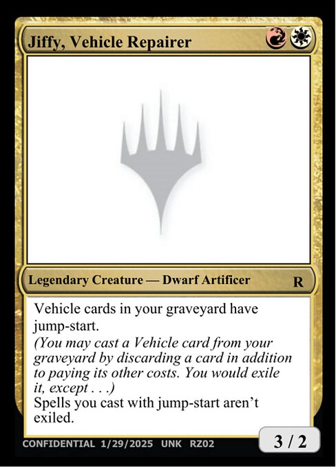 Vehicles in your graveyard have jump-start. (You may cast a Vehicle card from your graveyard by discarding a card in addition to paying its other costs. You would exile it, except...)
