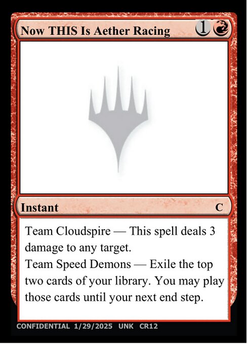 Team Speed Demons — Exile the top two cards of your library. You may play those cards until your next end step.
