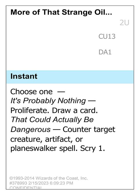 • That Could Actually Be Dangerous — Counter target creature, artifact, or planeswalker spell. Scry 1.